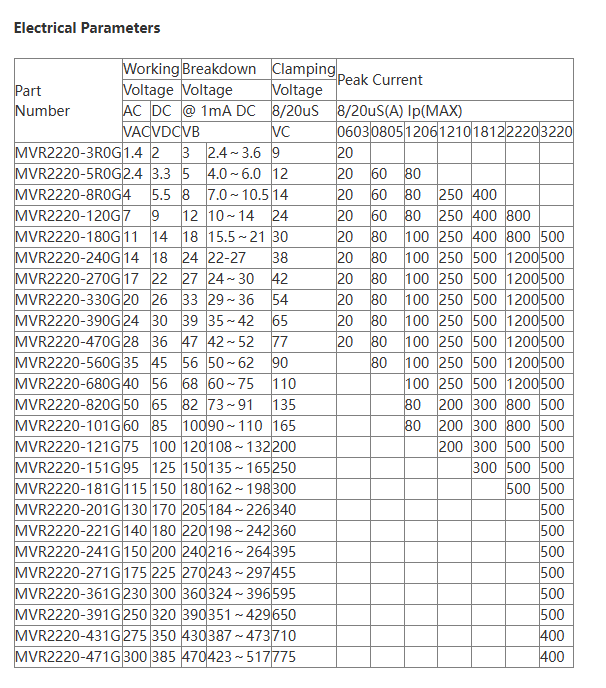 5750 5650 Surface Mount Multilayer Metal Oxide Varistors MLV MVR2220-391G 5.7x5mm 391V 500A Transient Surge Suppressors