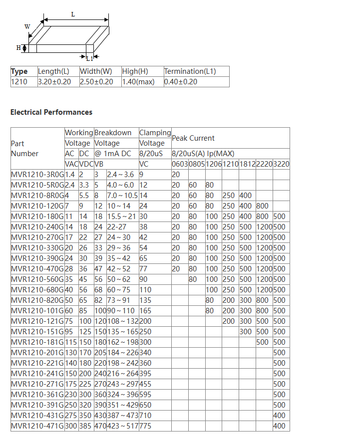 1206, 1210, 1812, 2220 | Industrial Control | IEC61000-4-5 | Surge Current: 3000A (8/20 µs) |