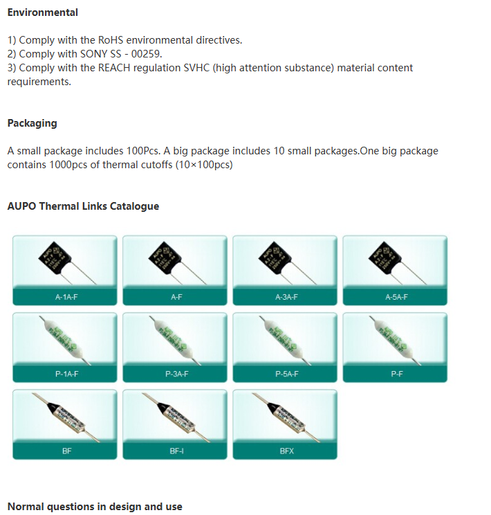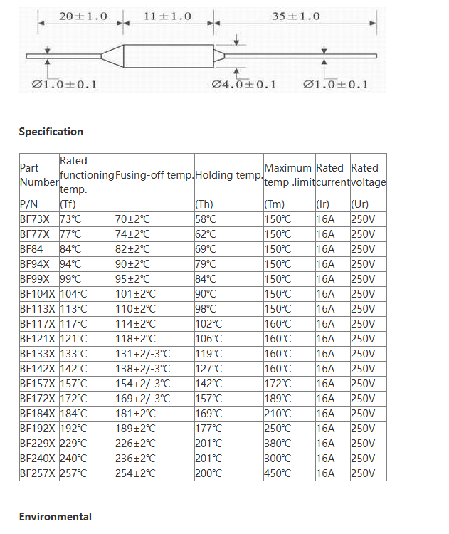 Aupo Thermal Cutoff Fuse TF 142℃ 250V 16A BF142X Axial Leaded Metal Case Temperature Thermostat Fuse With VDE ROHS CCC