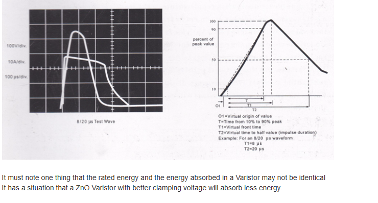 Where K is constant. K value are 1.0 for a rectangular waveform,1.4 for a 10/1000 us and 8/20 us waveform. And IP is the peak current applied, Vc is the clamping voltage which was current applied. T is the pulse width.